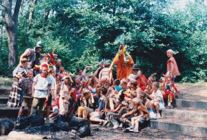 Zomerkamp in Apeldoorn van 13 juli t/m 20 juli. Dit kamp stond in het teken van tijdreizen. Lees hier wat er zoal is gebeurd. 1991 welpen zat ochtend Holbi Kampverslag